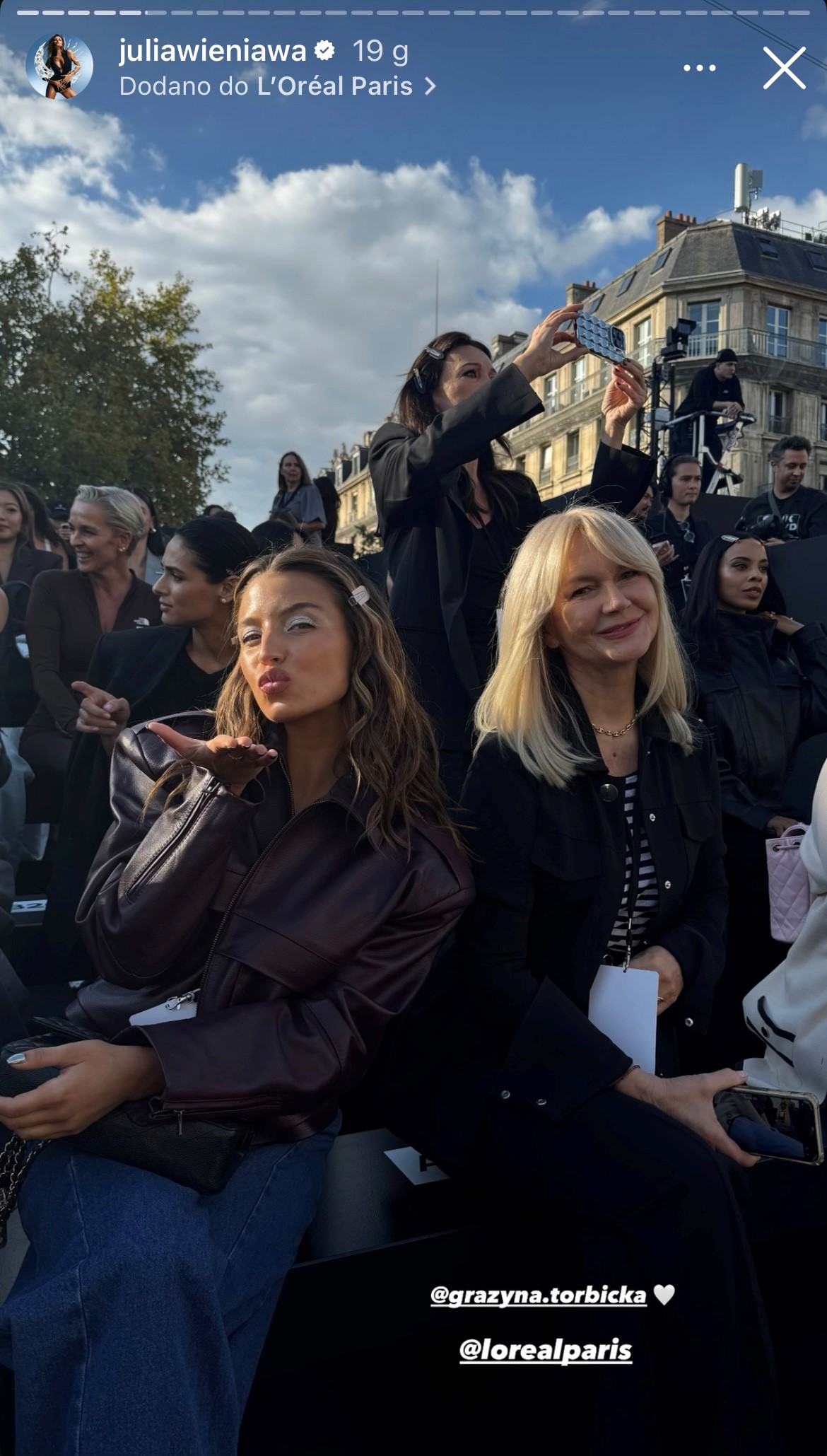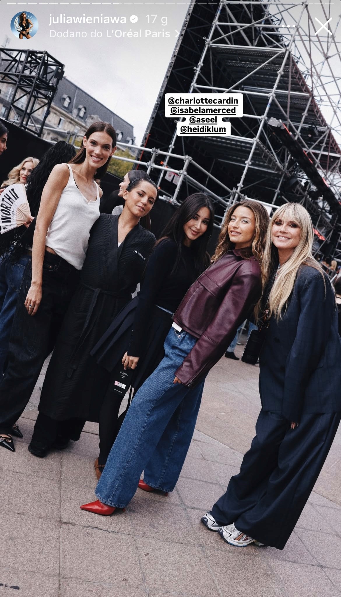 Julia Wieniawa aktywnie relacjonowała swój pobyt w Paryżu na Instagramie, dzieląc się zdjęciami zza kulis oraz spotkaniami z międzynarodowymi gwiazdami. Polska artystka pozowała m.in. z Heidi Klum, Kendall Jenner, Gillian Anderson, Carą Delevingne, a także z innymi ambasadorkami L'Oréal Paris. Wieniawa nie ukrywała ekscytacji i dumy z udziału w tak prestiżowym wydarzeniu, podkreślając, że to dla niej ogromne wyróżnienie.