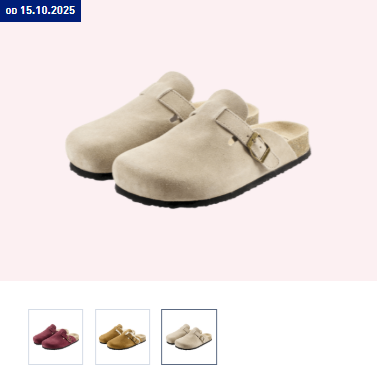 Damskie, w rozmiarach 37-41, będą dostępne w kolorach beżowym, bordowym lub kamelowym z jasnym futerkiem, męskie natomiast, w rozmiarach 41-45 – w kolorach beżowym, granatowym i czarnym. To idealny model do noszenia z grubszą skarpetą w chłodniejsze jesienne dni, a jednocześnie świetna alternatywa dla innych tego typu butów, których ceny dochodzą do kilkuset złotych za parę.