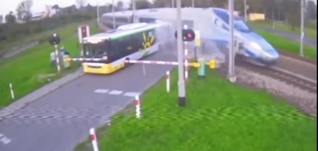 Pendolino wjechało w autobus. Mamy film. Kierowca próbował zatrzymać pociąg!